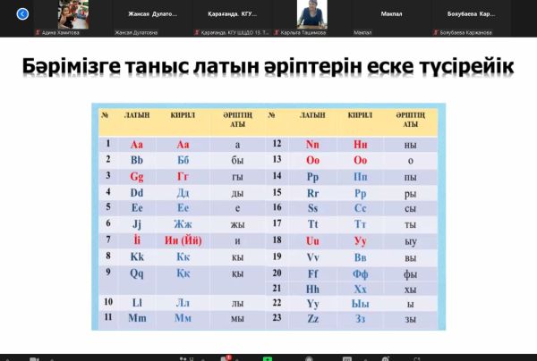06.12.2022 ж. Латын әліпбиіне көшу және насихаттау жөніндегі іс-шаралар жоспарына сәйкес тілдерді дамыту орталығымен бірлескен "Жаңа графикада оқу және жазу дағдысын қалыптастырамыз"…