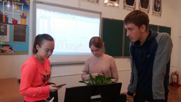 Учащиеся изучают биосигналы человека (ЭКГ, пульс). С помощью прибора lab.Quest. и станда…