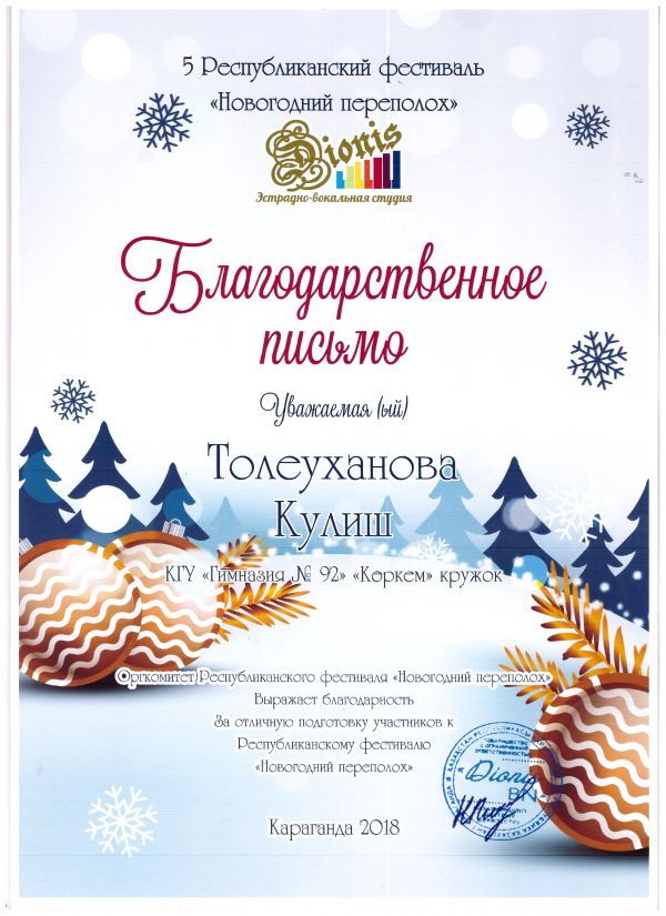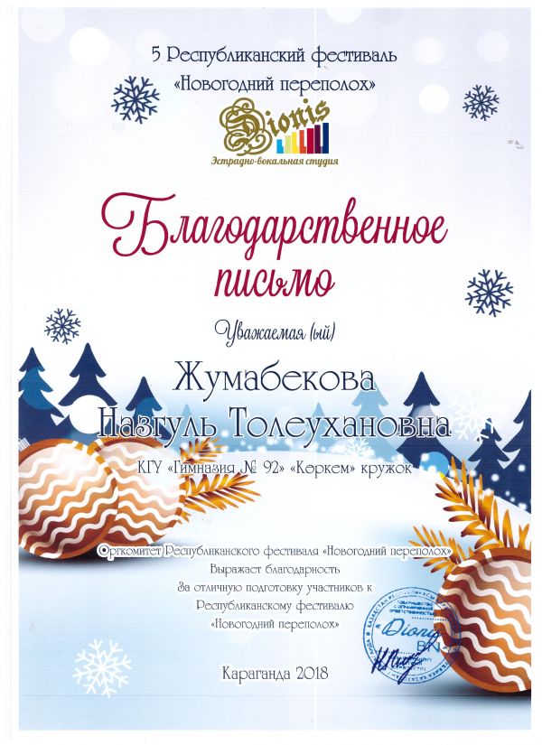 2018 жылдың 17 желтоқсанында жергілікті композитор, жерлесіміз К.Ж.Мерсалимовтың шығармашылығына арналған халықаралық «Вальс снежинок» фестивалі алғашқы рет ұйымдастырылды.