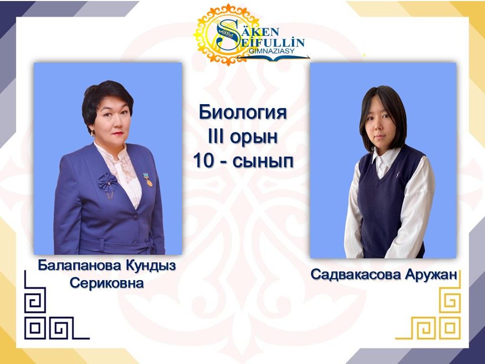 6 "Б" Серікхан Назым, II орын. Пән мұғалімі Түсенова Бақытжан Қазыкенова.