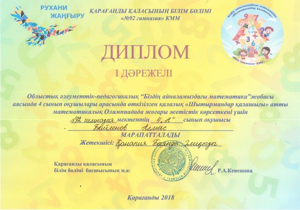 1 наурыз 2018 жылы «№92 гимназия» КММ аясында «Біздің айналамыздағы математика» педагогикалық жобасы аясында «Функционалдық сауаттылық-оқушылардың өзгермелі өмірге бейі…