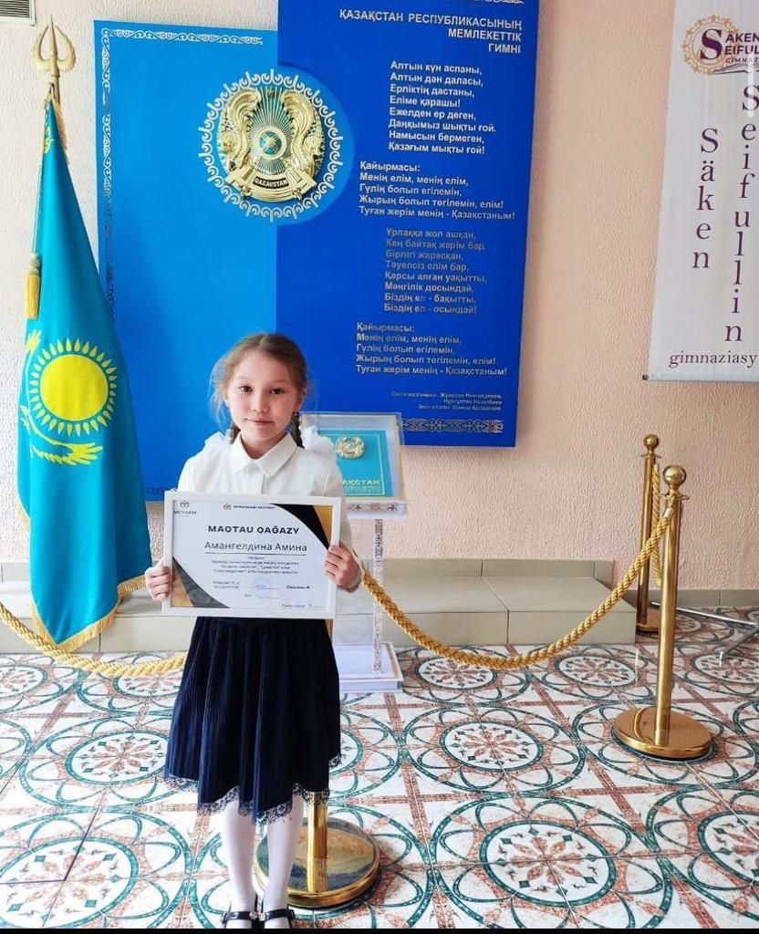 "Сәкен Сейфуллин атындағы гимназиясы" КММ 3 “б” сынып оқушысы Амангельдина Амина Қарағанды қаласы "Мейрам" балалар киностудиясында негізделген " Актерлік шеберлі…
