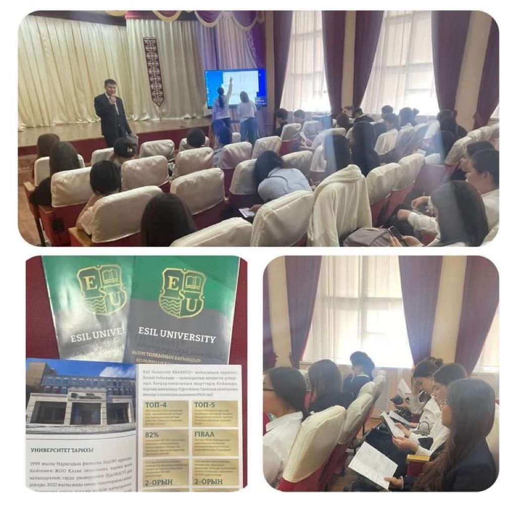 Қарағанды облысы білім басқармасының хатына сәйкес «Esil университеті» мекемесі 10-11 сынып оқушылармен кәсіби бағдар беру мақсатында кездесу ұйымдастырды.