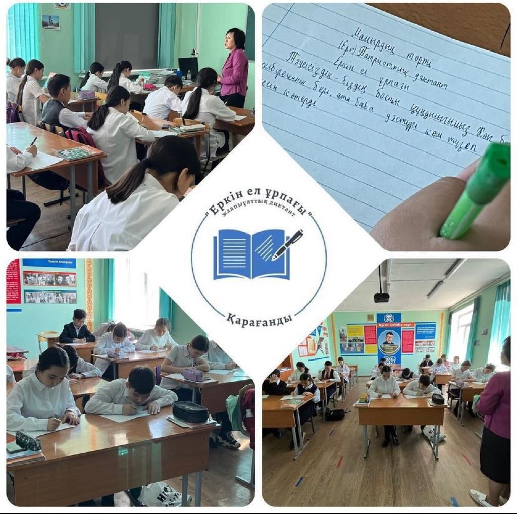 Бүгін гимназия оқушылары, Қазақстан Республикасы Қарулы Күштерінің құрылғанына 31 жыл және Ұлы Жеңістің 78 жылдығына арналған «Еркін ел ұрпағы» тақырыбындағы жалпыұлттық диктант жазды.