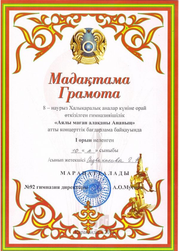 Аяулы да қымбатты аналар мен аруларымыздың мерекесі 8 наурызда 11 сынып ұлдары гимназия ұстаздарына және аналарына арналған «Сыйынар ем ана деген тәңірге» атты концерттік бағдарламаларын…
