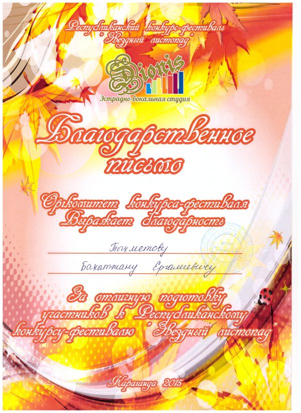 Республикалық "Dionis" конкурс - фестиваліне №92 гимназияның 2 сынып оқушылары Уалиева Айгерім, Сайлаубек Сәбит қатысты. Айгерім - І дәрежелі дипломант және ІІІ дәрежелі лауреат атығын иел…