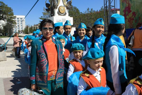 №92 гимназияның "Жас Ұлан" біріңғай балалар мен жасөспірімдер ұйымының қоғамдық бірлестігінің мүшелері 1 мамыр Бірлік күні Қазақстан Халқы Ассамблеясының 20 жылдығына орай өткен облыстық б…