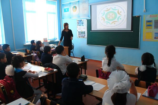 9-сыныптарарасында қазақ тілі пәнінің мұғалімі – К.К.Садвокасова және тарих пәнінің мұғалімдері – А.А.Тусипханов, Д.Н.Утжановтың ұйымдастыруымен «Қазақстан халқы Ассамблеясының хал…