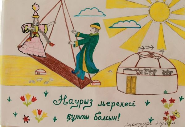 Күн мен түн теңеліп, көктем күшін асырған Ұлы күннің жеріме, күнім көктей жайнаған! Орманда құс сайрады жалындаған жастықтай Жаса Наурыз мейрамы!