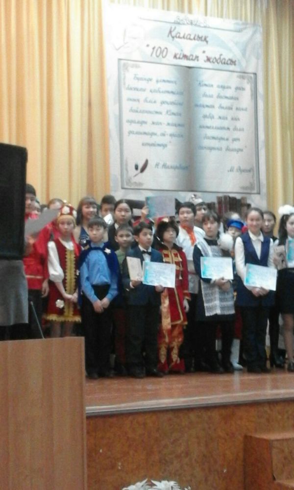 М.Жұмабаев атындағы №39 гимназияда қалалық мектептер арасында өткен «100 кітап» жобасының 5-сыныптар арасындағы «Қасиетіңнен, қара өлең, айналайын» атты мәнерлеп оқу сайысы б…