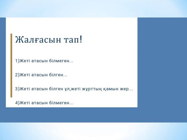 7 " б" сыныбына "Жеті атасын білген ұл жеті жұрттың қамын жер" тақырыбында интеллектуалды ойыны өткізілді. Оқушылар өз жеті аталар…