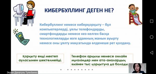 "Цифрлық әлем акпараттық сауаттылықты дамыту" апталығы аясында гимназия психологы Дана Кабдрашевнаның тарапынан ұйымдастырылған "Интернет желісіндегі балалардың қауіпсіздігі…