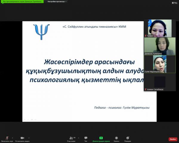 Жеке тұлғаның жан-жақты дамуында және оқушылардың өзін-өзі анықтауында, сонымен қатар тұлғаның қалыптасуында мүмкін болатын тәртіп бұзушылықтың алдын алу мақсатында гимназияда «Құқықбұзушылық…