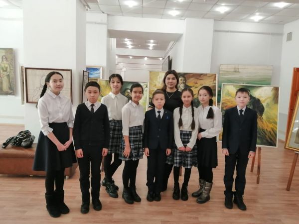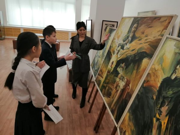 7 "Ә" сынып оқушылары Қарағанды облыстық бейнелеу өнері музейіндегі Абай Құнанбаевтың 175 жылдығына арналған музей қорынан "Дана Абай - Дара Абай" суретшілердің көрмесін тамашала…