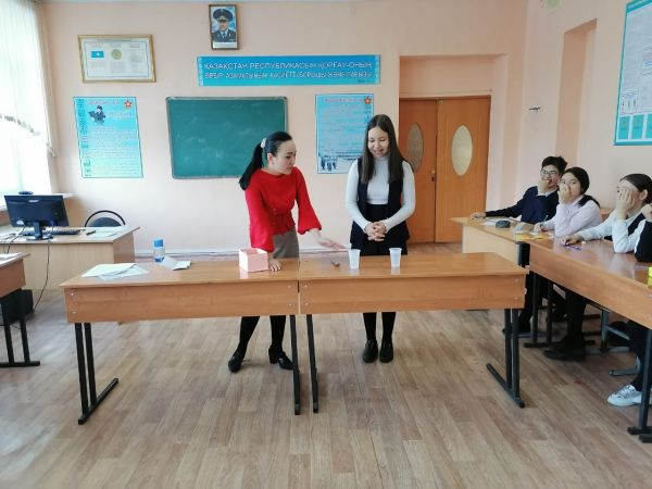 "Әлiмжеттiлiк - әлсiздiң ici" тақырыбында 8 сынып оқушыларымен психологиялық сағат жүргiзiлдi.