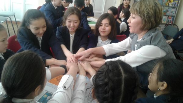 "Орта буында оқу жағдайына бейімделу кезеңінде психо-педагогикалық жұмыс" тақырыбында 5 сыныптар арасында гимназия психологы Смагулова Эльмира Габитовна тренинг өткізді