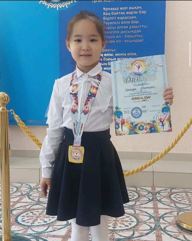 Қарағанды қаласында 23-25 күндері аралығында өткен көркем гимнастикасы бойынша "JUNIOR CUP" ашық чемпионатында 1"А" сынып оқушысы Серғазы Фатима 1 орын иеленді.