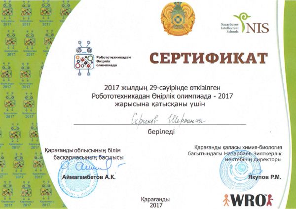 29 сәуір күні Қарағанды қаласы химия-биология бағытындағы Назарбаев Зияткерлік мектебінде өткізілген Робототехникадан "Өңірлік олимпиада - 2017" жарысына №92 гимназияның оқушылары "Шы…