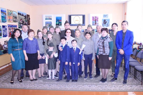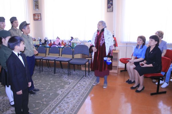 Этномұражай жетекшісіБағдат Естаевна Мактупованың ұйымдастыруымен Ұлы Жеңістің 72 жылдығына арналған «Жеңіс жаңғырығы», «Эхо победы», «Echo wins» тақырыбында гимн…