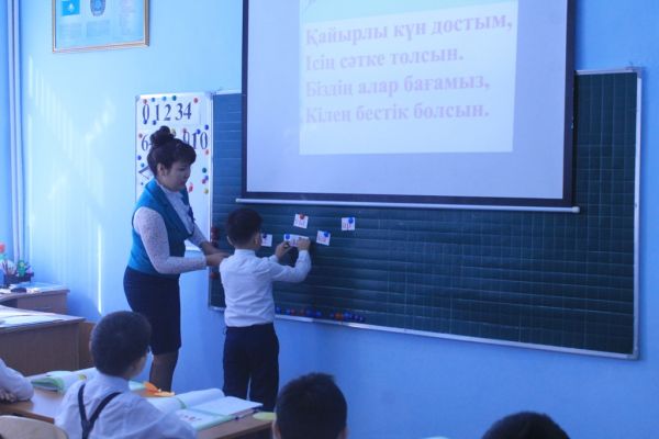 5 мамыр күні №92 гимназияда Қазақстан Республикасы Білім және ғылым министрлігінің білім беру мазмұнын трансляциялау орталығының бас маманы Мұхамедханова Алмагуль Кенесхановна бастауыш мектептің 1-с…