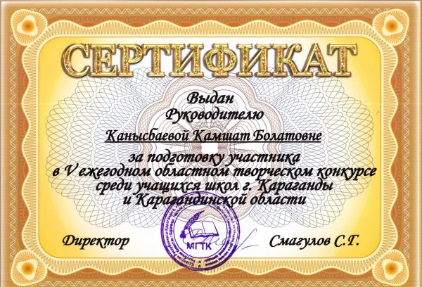 №92 гимназияның технология пәнінің мұғалімі Конысбаева Камшат Болатовнаны жеңістерімен құттықтаймыз!