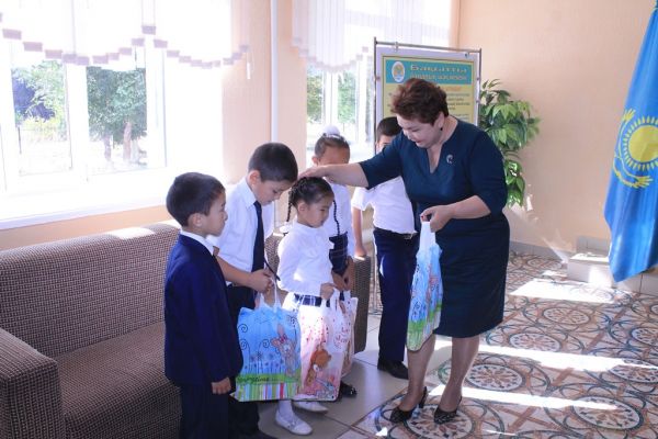 "Мектепке жол" республикалық акциясы "Бақытты балалық шақ мекені" ұранымен аз қамтылған, көп балалы отбасы оқушыларын ата-аналардың демеушілігімен оқу жабдықтары табысталды.