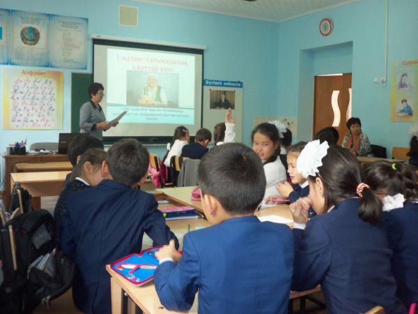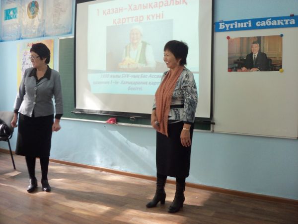 «92 гимназия» КММ 4 «А» сыныбында 01.10.2014ж. күні «Қазыналы қариялар» тақырыбында сынып мұғалімі Турганова Сания Бахышқызы арнайы сынып сағатын өткі…