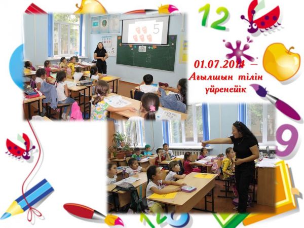 "Балдырған" жазғы сауықтыру лагерінің балалары Зейнелгабдина Жансая Аскатовнамен бірге ағылшын тілін үйренуде.