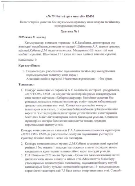 Қарағанды облысы білім басқармасының Қарағанды қаласы білім бөлімінің «№79 негізгі орта мектебі» коммуналдық мемлекеттік мекемесі мектеп жанындағы шағын орталыққа педагог-психолог лауазы…