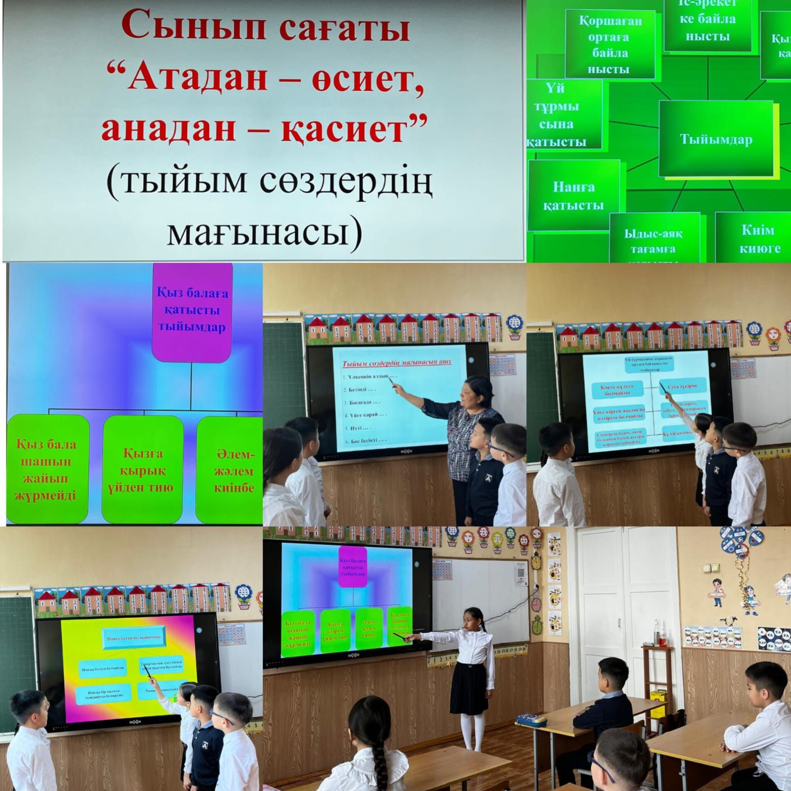 2025 жылдың 21 сәуір «Болашағы зор мамандықтар жоқ, тек болашағы зор мамандар бар» аптаның дәйек сөзі ретінде 1-9 сыныптар аралығында «Атадан-өсиет, анадан қасиет» тақырыбынд…