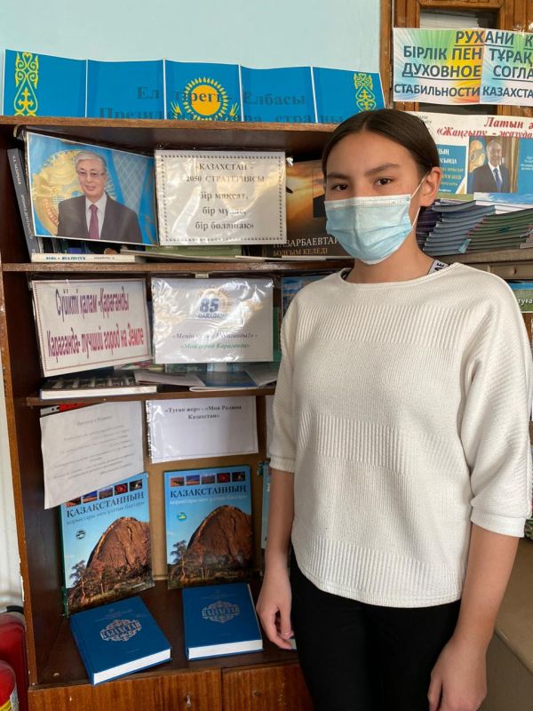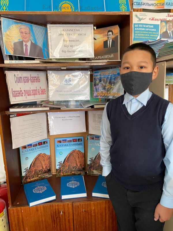 Оформление выставки в школьной библиотеке на тему "Мой Казахстан".