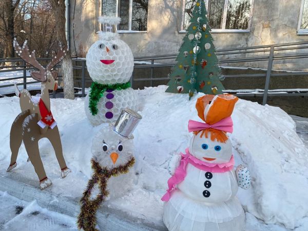 Жаңа жылға арналған мектеп аумағын безендіру.