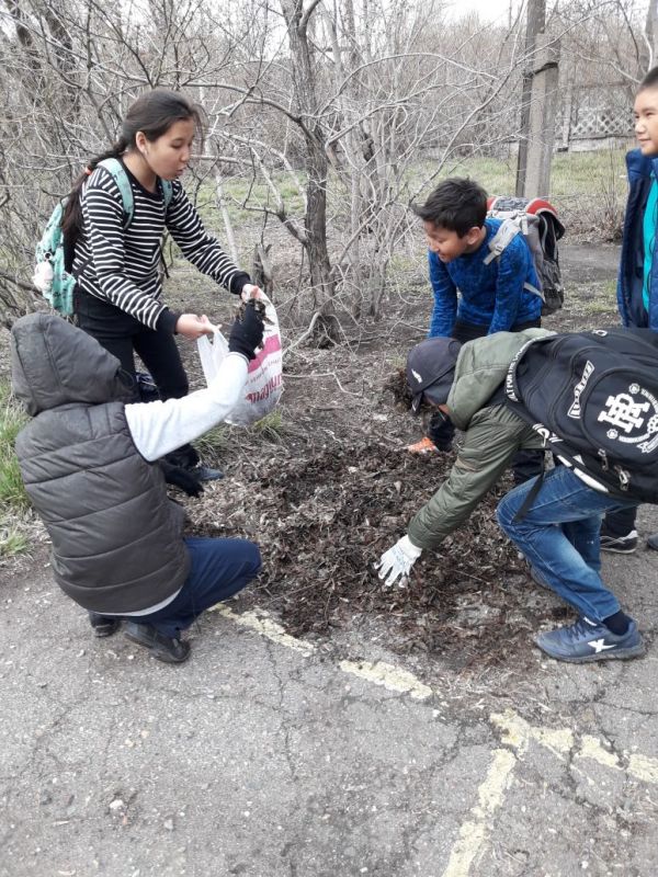 Мектебіміздің оқушылары, ұстаздары бүгін жұма күні мектеп ауласын тазалауға шықты.