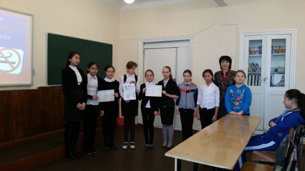 №79 НОМ-да "Темекі шегудің зияны" тақырыбында биология пәні мұғалімі Н.Т. Әбдікәрімова 7-8 сыныптар арасында тренинг өткізді.