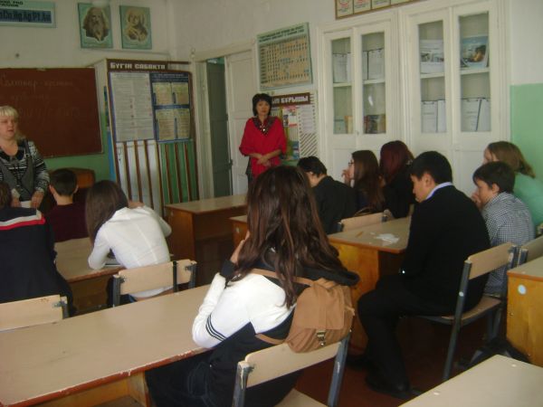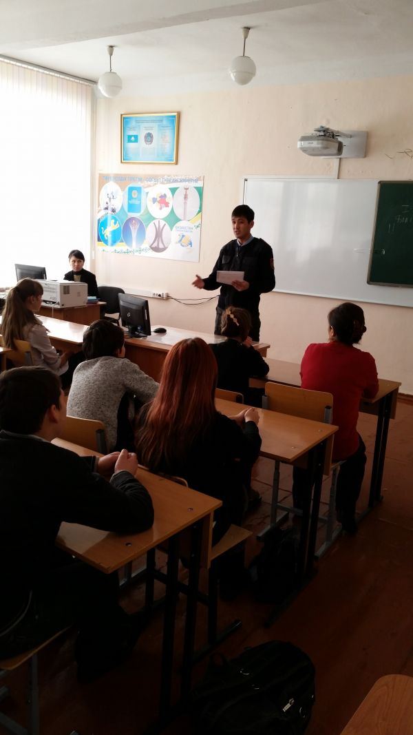Мектебімізде жас мамандар, география пәні А.А.Қасенбек пен ағылшын тілі пәні мұағілімі А.Қ.Қожахметова "Дүниежүзілік ЖИТС-пен күресу күніне" орай 8-9 сыныптар арасында дөңгелек…