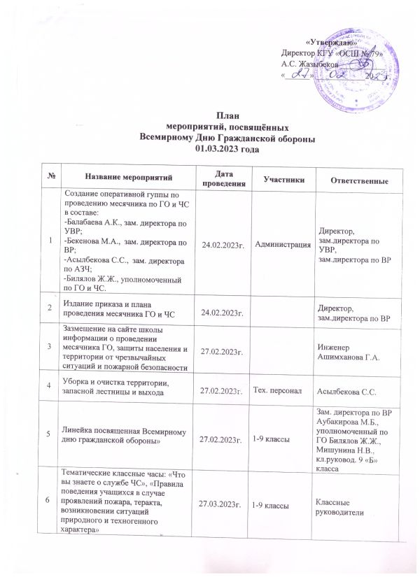Азаматтық қорғаныс және төтенше жағдайлар жөніндегі бұйрық және жұмыс жоспары