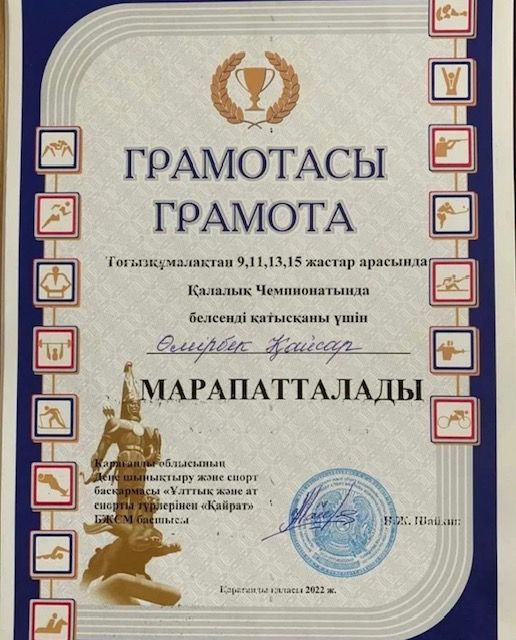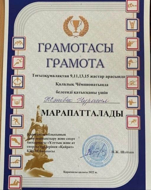 2 "А" сынып оқушысы Қайырберлі Кәусар 12-15 жас аралығындағы қыздар арасында Тоғызқұмалақ Чемпионатында 3 орынға ие болды.