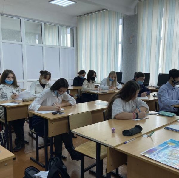 13 декабря 2021 года в школе провели общеказахстанский диктант на тему "Казахстан - светское государство" среди учащихся 9 "Б" класса.
