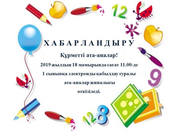 18 мая 2019 года в 11.00 часов в школе состоится собрание для родителей будущих первоклассников, по электронному приему детей.