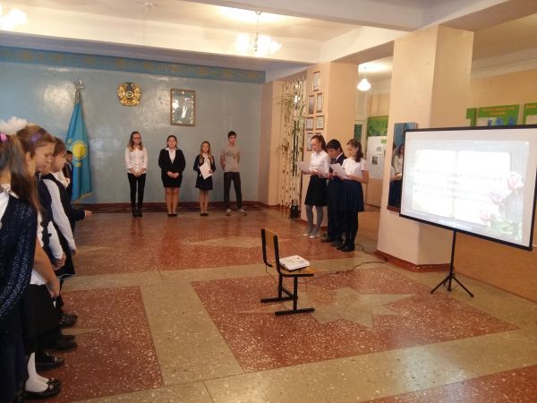 Мектебімізде 19-24 қыркүйек аралығында ҚР халықтарының тілдер күніне арналған біршама іс-шаралар ұйымдастырылып. өткізілді. 4 "б" сыныбында қазақ тілі пәнінен К.Т.Тлеубаева, 9…