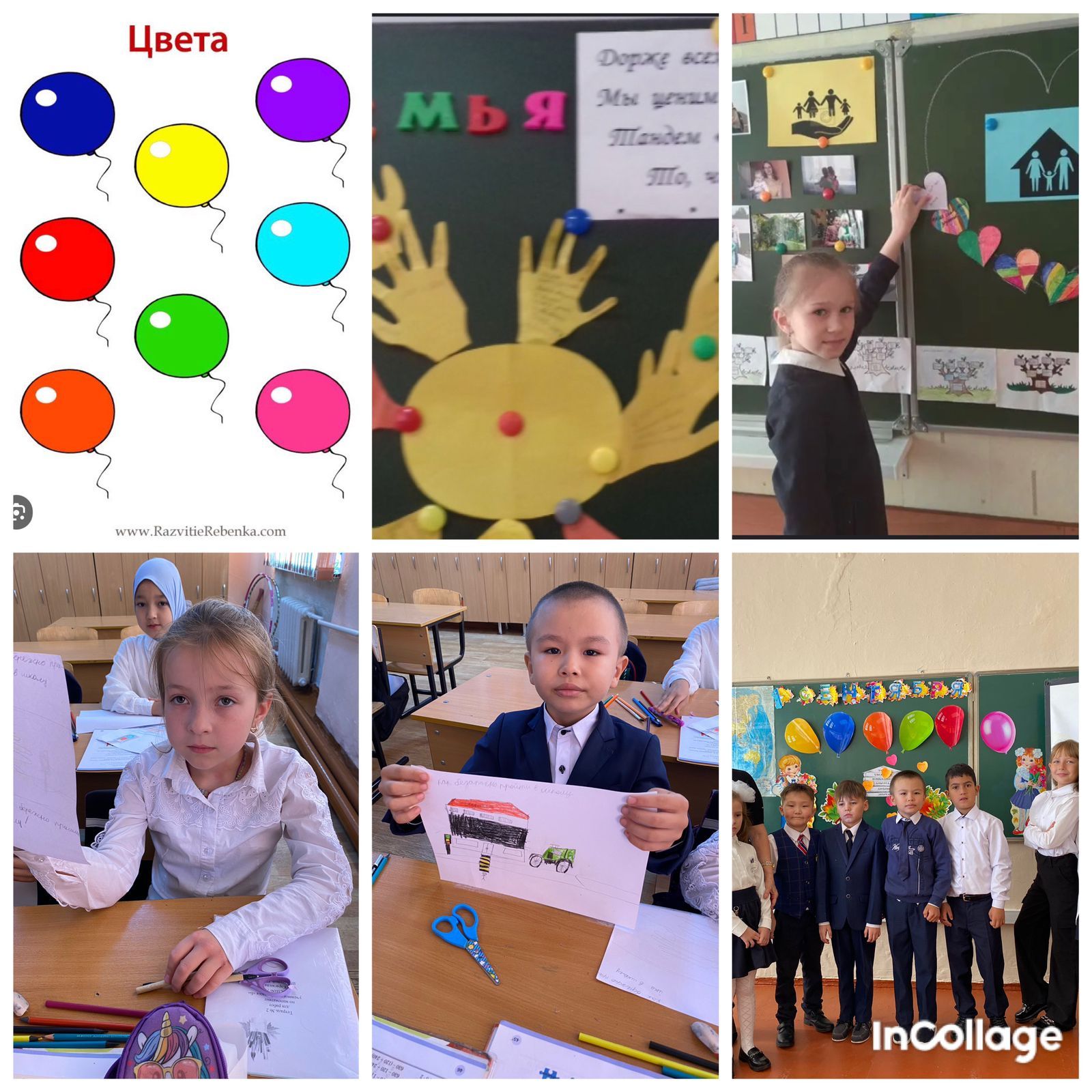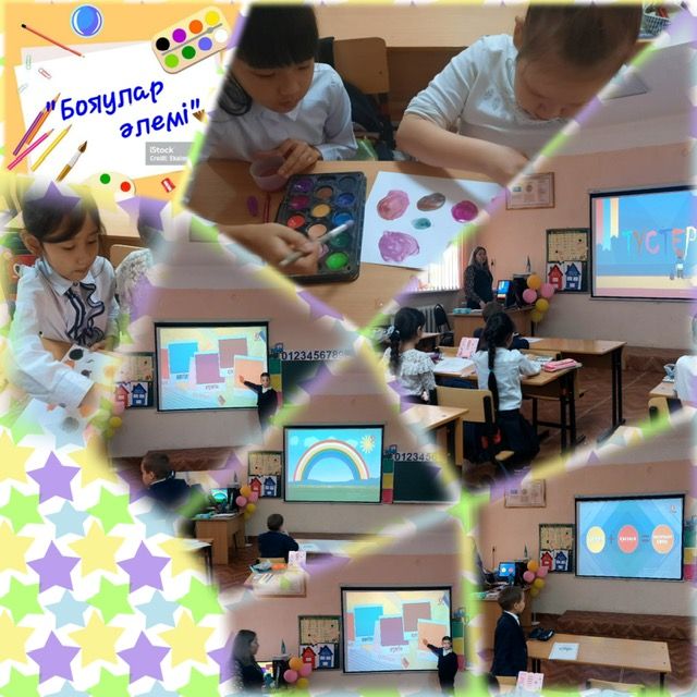 В рамках недели эстетической грамотности «Әсемдік әлемі» среди учащихся 1-4 классов были проведены классные часы на тему "В мире цвета".