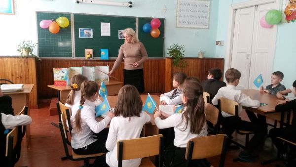 Кл,руководители: 2Б Егина Т.В и 3Б класса Козырская Н.В провели классные часы на тему: "Свободный, крылатый, независимый Казахстан!"