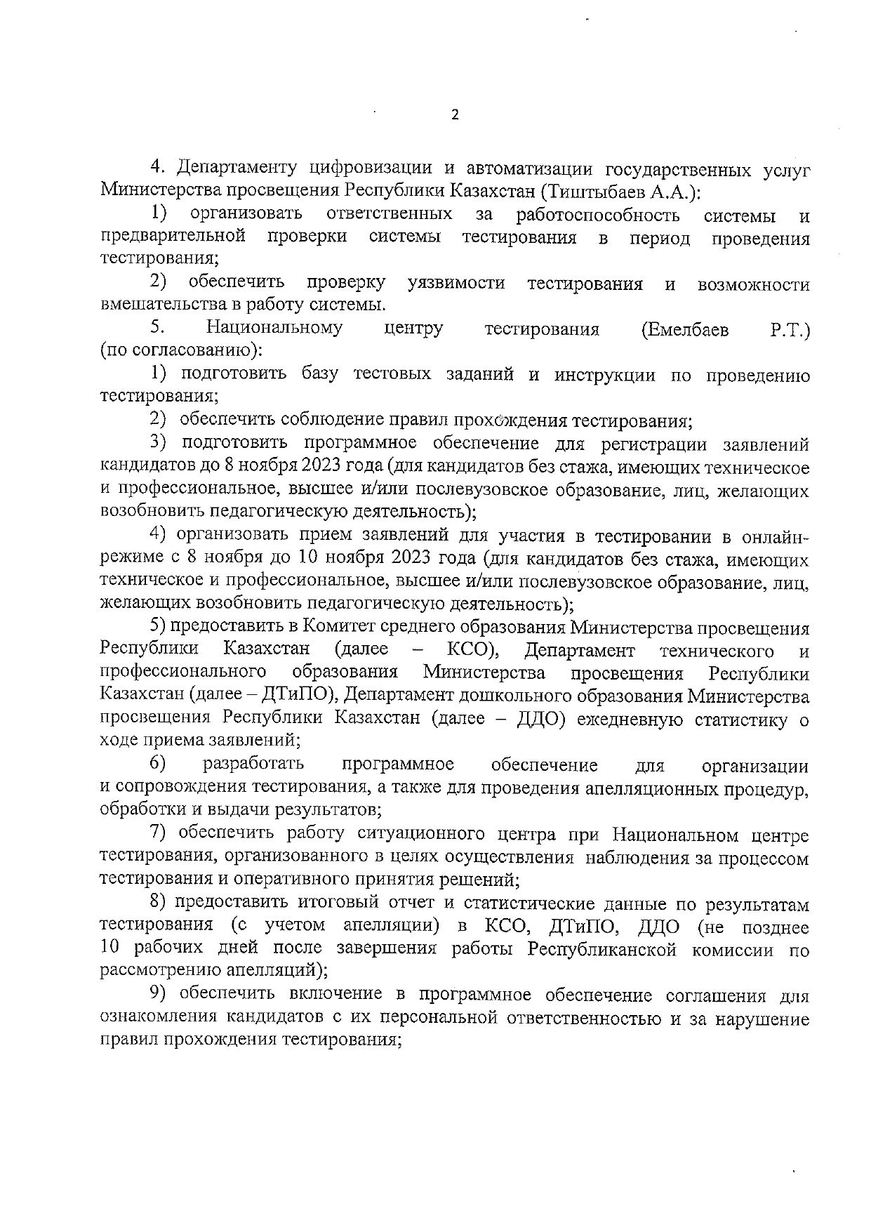 Қазақстан Республикасы Оқу-ағарту Министрлігінің "Тестілеу жүргізудің кейбір мәселелері" туралы бұйрығы.