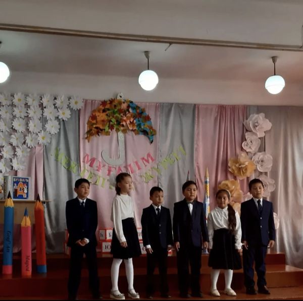Учащиеся 4 "А" класса поздравили ветерана педагогического труда Тлеубаеву Камалпану Толеутаевну с первыми праздниками октября - Днем пожилых людей и Днем учителя.