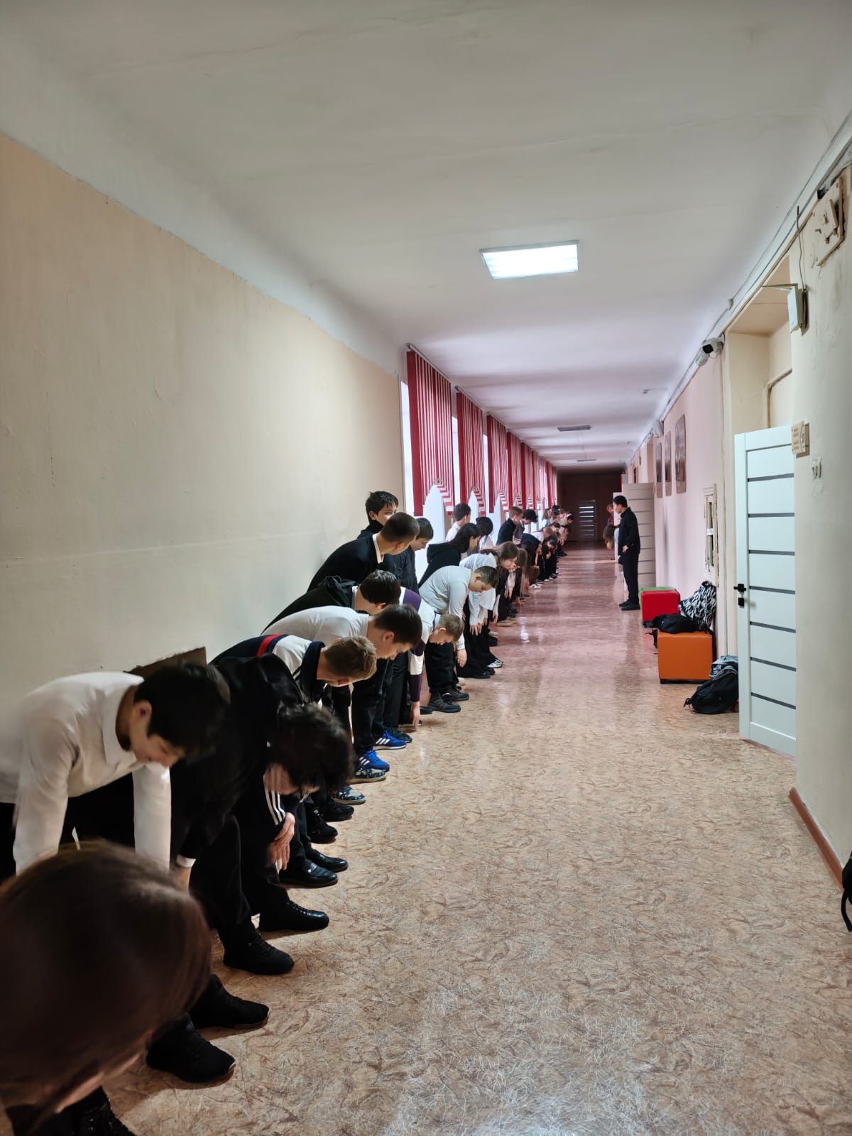 2026 жылғы 09 ақпанда №79 негізгі орта мектебінде жалпы мектептік саптық жиын өтті.