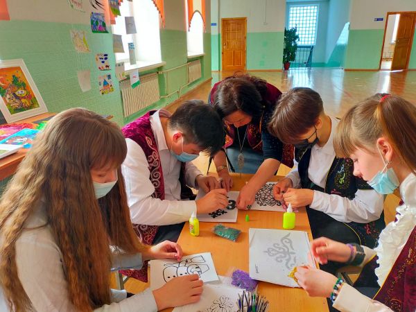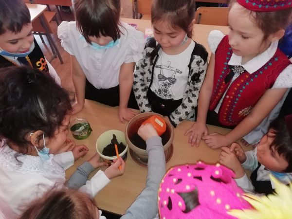 Учащиеся 6Б и 2А класса. На мероприятии играли в казахские национальные игры " Аркан тартыс" и " Сақина". Учащиеся 6Б класса знакомили казахскими национальный блюдами как қымыз,…