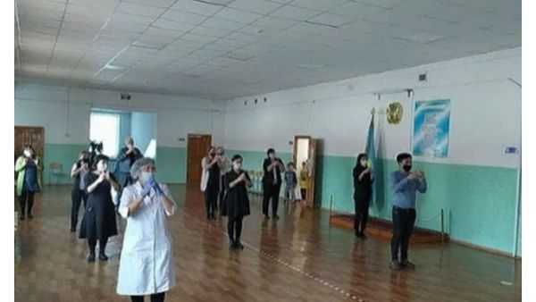 С целью профилактики головных болей и болей в шейном отделе позвоночника с педагогами первой смены была проведена производственная гимнастика .