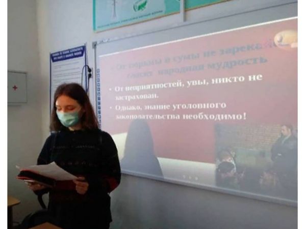 «Құқықтық сауаттылық» апталығы аясында 9 «А» сыныбында «Қазақстандағы ұлттық құқықтың қалыптасу кезеңдері» тақырыбында НОМ 73 мектебінде 12.02.2021 іс-шара өткізі…