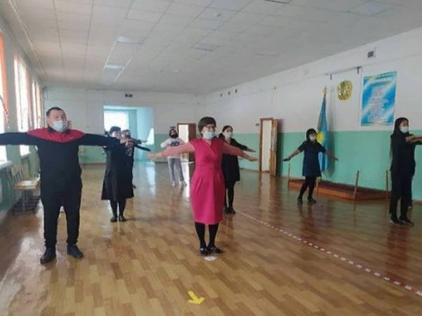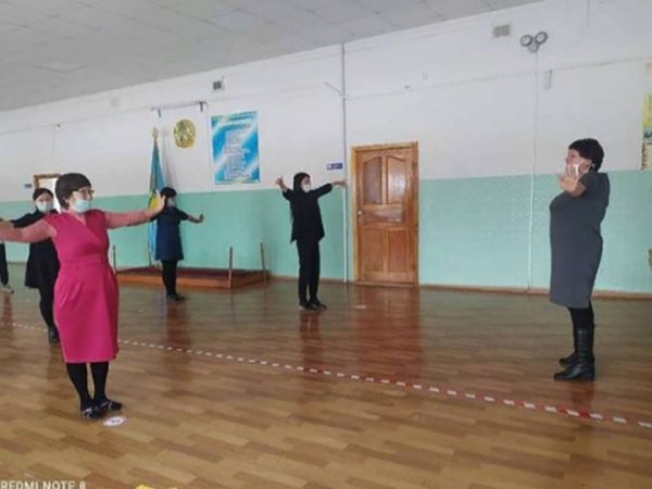 «Дені саудың- жаны сау» дене шынықтыру апталығы аясында 1 ауысым мұғалімдерімен гимнастика өткізілді.