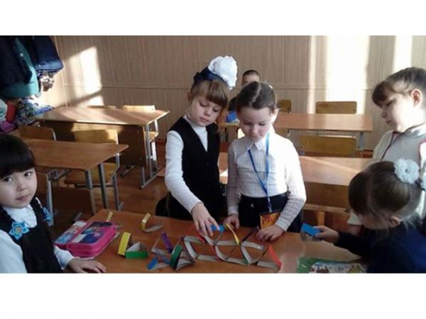 В рамках проекта «Юный исследователь» ребята первого класса говорили о Египетских пирамидах и практиковались в построении пирамид из бумаги